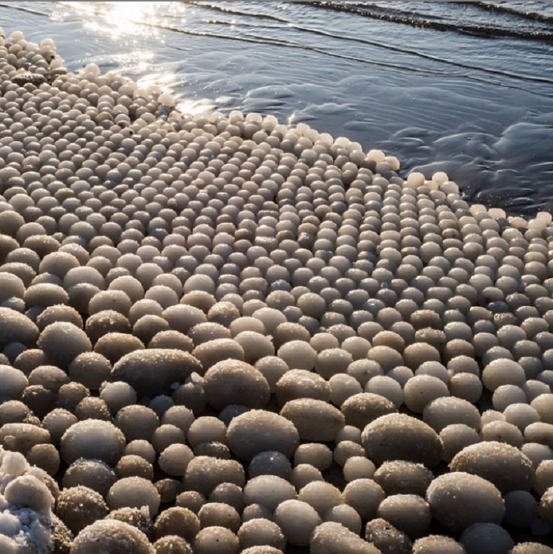芬兰北部的小岛出现自然奇景,海边的沙滩上铺有整片的「蛋」,在阳光下闪闪发亮非常美丽,原来这是一定条件下自然形成的「冰蛋」,让当地居民也啧啧称奇。