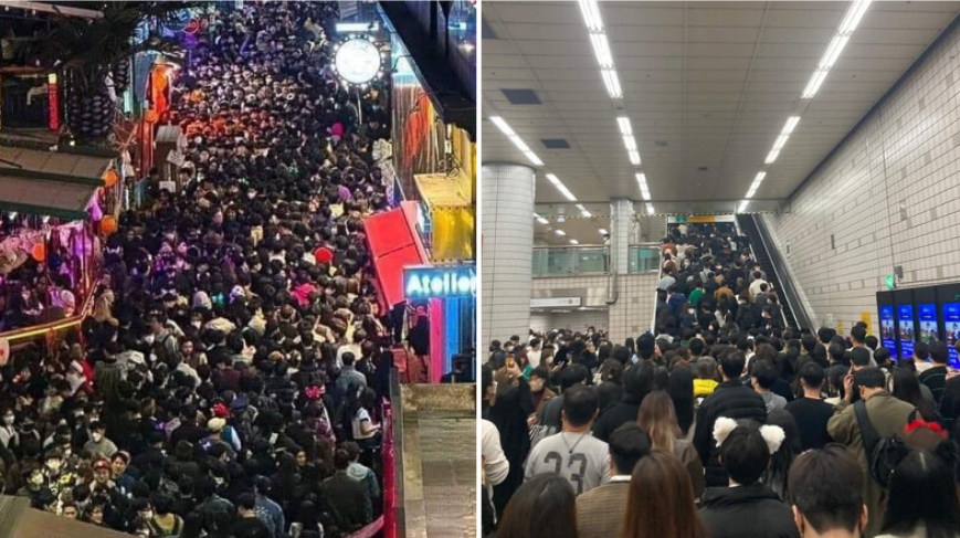 韩国媒体报导,梨泰院包含酒吧、餐厅等聚集的街道,在29日中午过后已经开始涌入大批人潮,一直到晚间10点左右,从地铁站到整个区域都是人,估计超过10万人同场狂欢。有许多目击者表示,当时根本水泻不通,只好掉头就走。