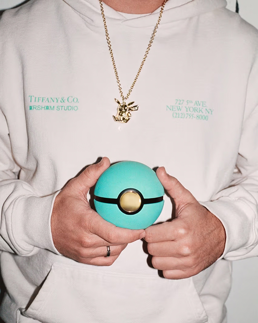 上一次以Daniel Arsham在曾在东京举行的宝可梦联名特展《A Ripple in Time》为发想,将经典小蓝盒变成腐蚀青铜艺术品,精选六大人气角色:皮卡丘、小火龙、杰尼龟、胖丁、卡拉卡拉与梦幻,结合Tiffany的珠宝首饰订制工艺推出一系列共九款商品。