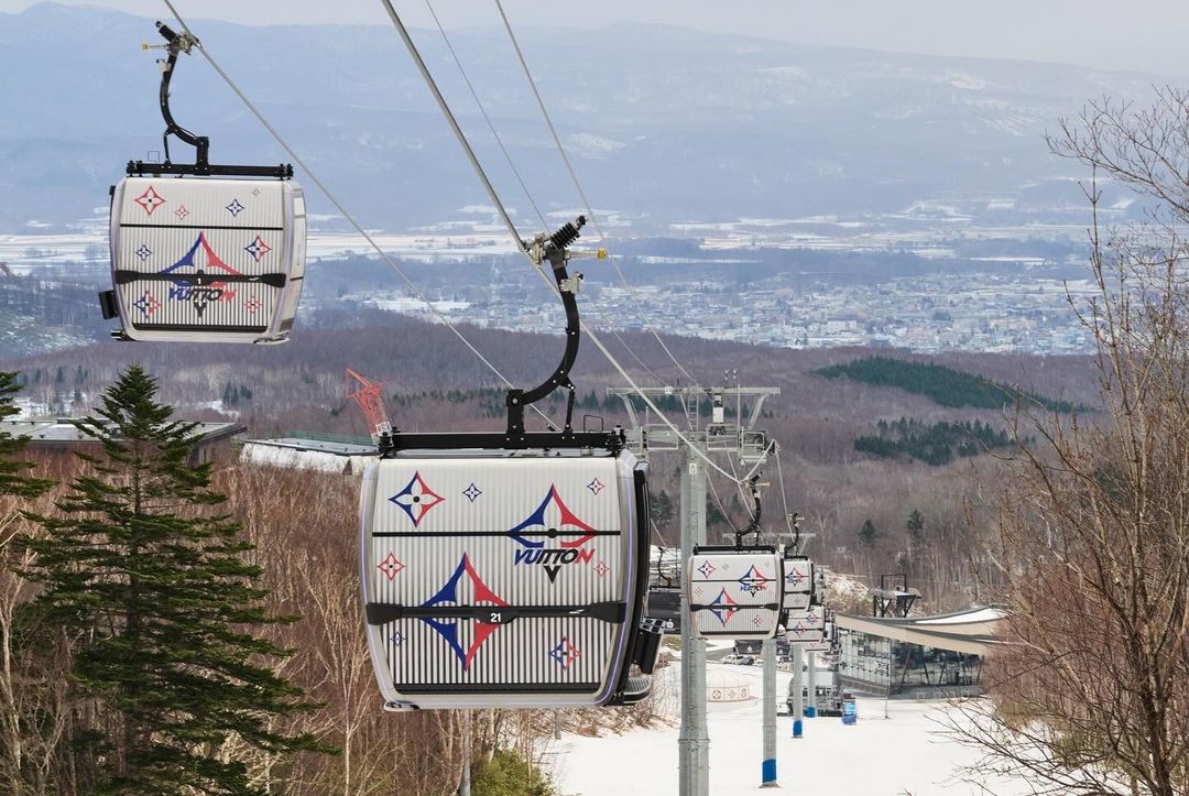 二世古位于北海道,距离该市最大城市札幌约 2 个小时车程,拥有着与世界闻名的滑雪场与浪漫的雪景。而从 Louis Vuitton 快闪店的所在位置放眼看去就能够看到羊蹄山和新雪谷山脉的景色,而品牌还该滑雪场上的登山缆车改成 LV monogram 造型,全面地将奢侈品与运动相结合。