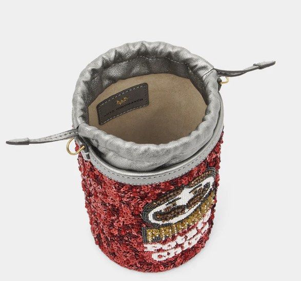 ANYA HINDMARCH携手品客洋芋片推出联名款,以经典的原味为主轴,采用红色主调,并藉由翘胡子图案让人会心一笑,该系列「Anya Brands Pringles」目前在官网共有4款商品,分别为围巾盖毯、天鹅绒乐福鞋与两款迷你包,其中一款为亮片材质的缩口水桶包,另一款则为超级迷你的零钱拉链包。
