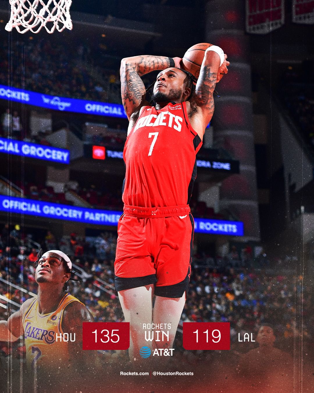 湖人客场119-135爆冷不敌火箭,最多落后30分,输掉一场价值两胜的比赛,胜率回到五成,排名西部第九!