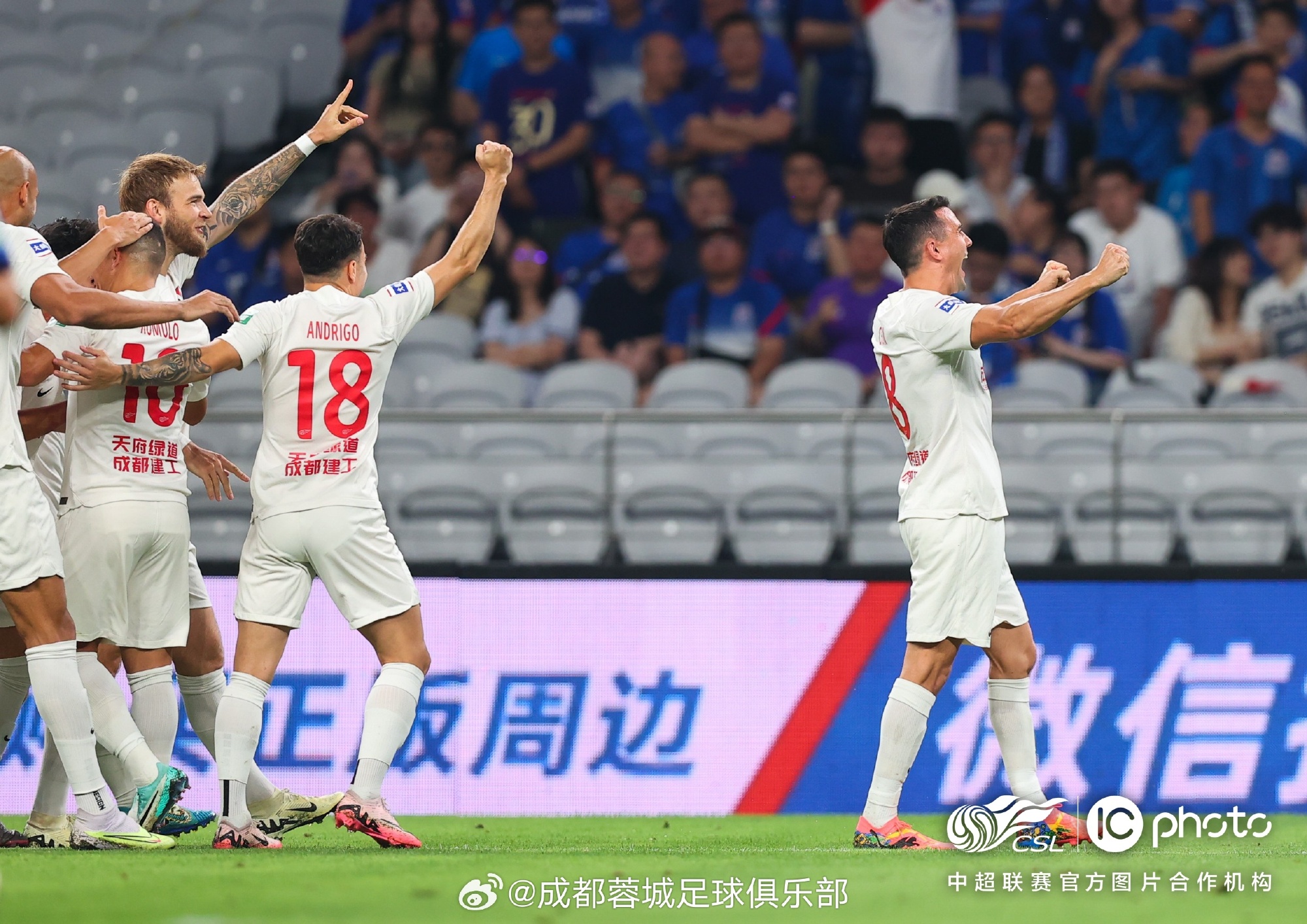 成都蓉城首发:16-蹇韬、2-胡荷韬、4-莱切特(F)、23-杨一鸣(87′ 22-李扬)、11-古尔芬克尔(F)、28-杨帅、8-周定洋、18-安德里戈(F)(67′ 24-唐创)、39-甘超(67′ 25-买提江)、10-罗慕洛(F)、21-费利佩(F)