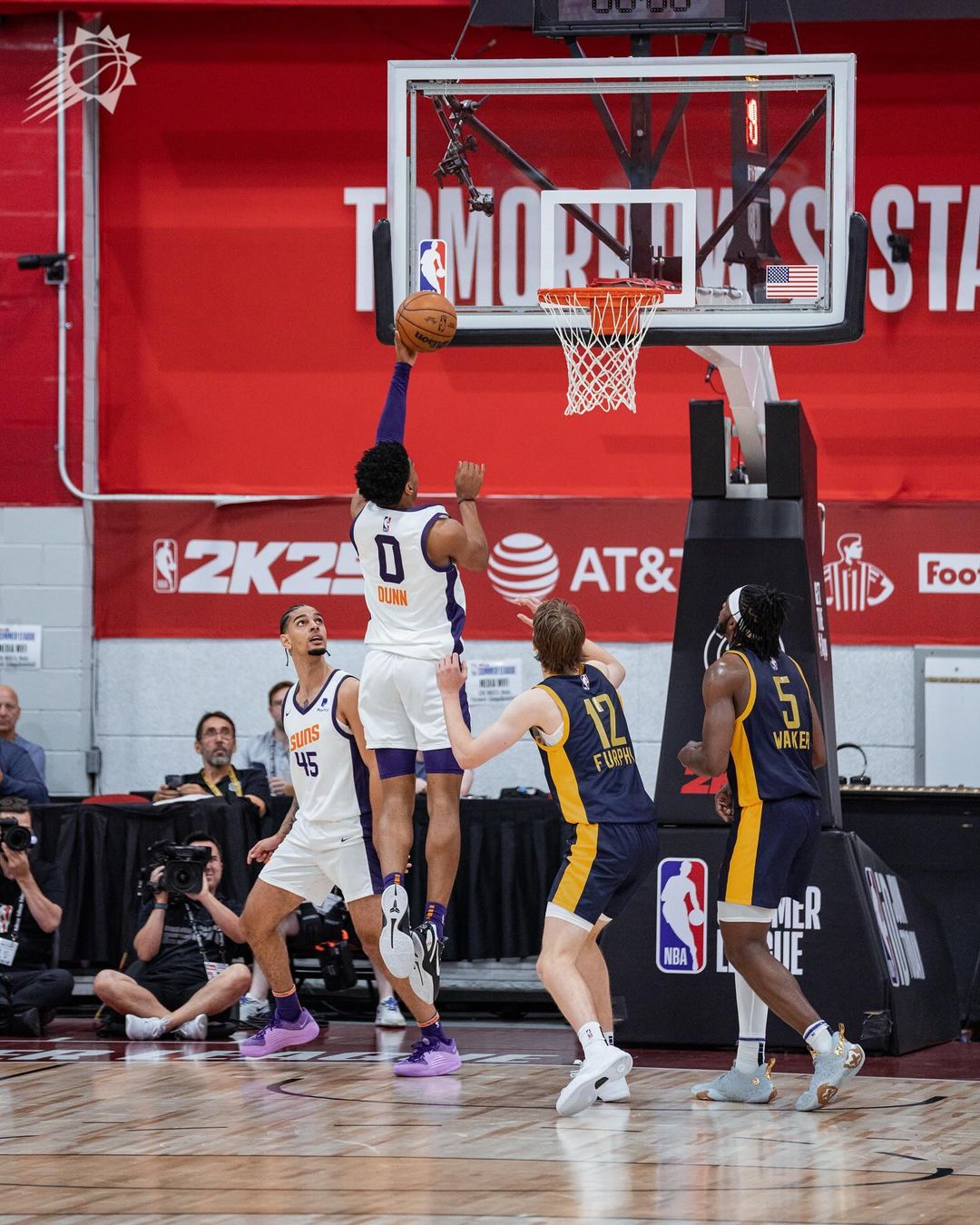 次节,太阳连中三分扩大领先,步行者频频杀入内线咬住比分,罗迪中投将分差拉开到两位数,半场战罢太阳54-44领先10分。