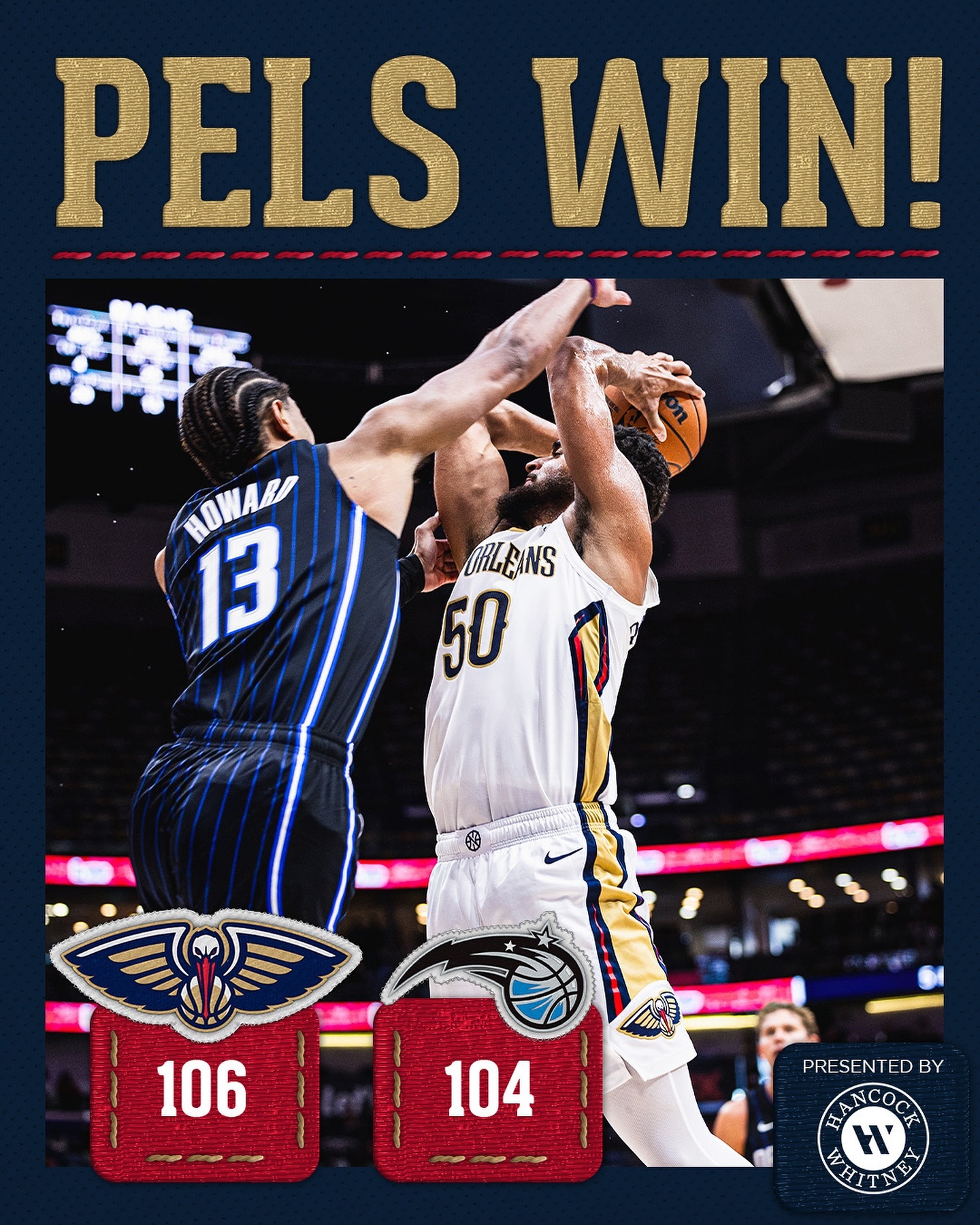鹈鹕106-104险胜魔术。