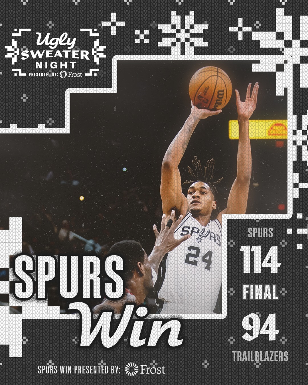 中场休息回来,马刺继续压制开拓者,他们第三节27-25净胜2分,且第四节马刺继续27-25净胜2分。马刺在文班亚马率领下逐步压制开拓者扩大20+领先优势,文班亚马下半场狂轰19分表现给力,最终马刺114-94大胜开拓者。