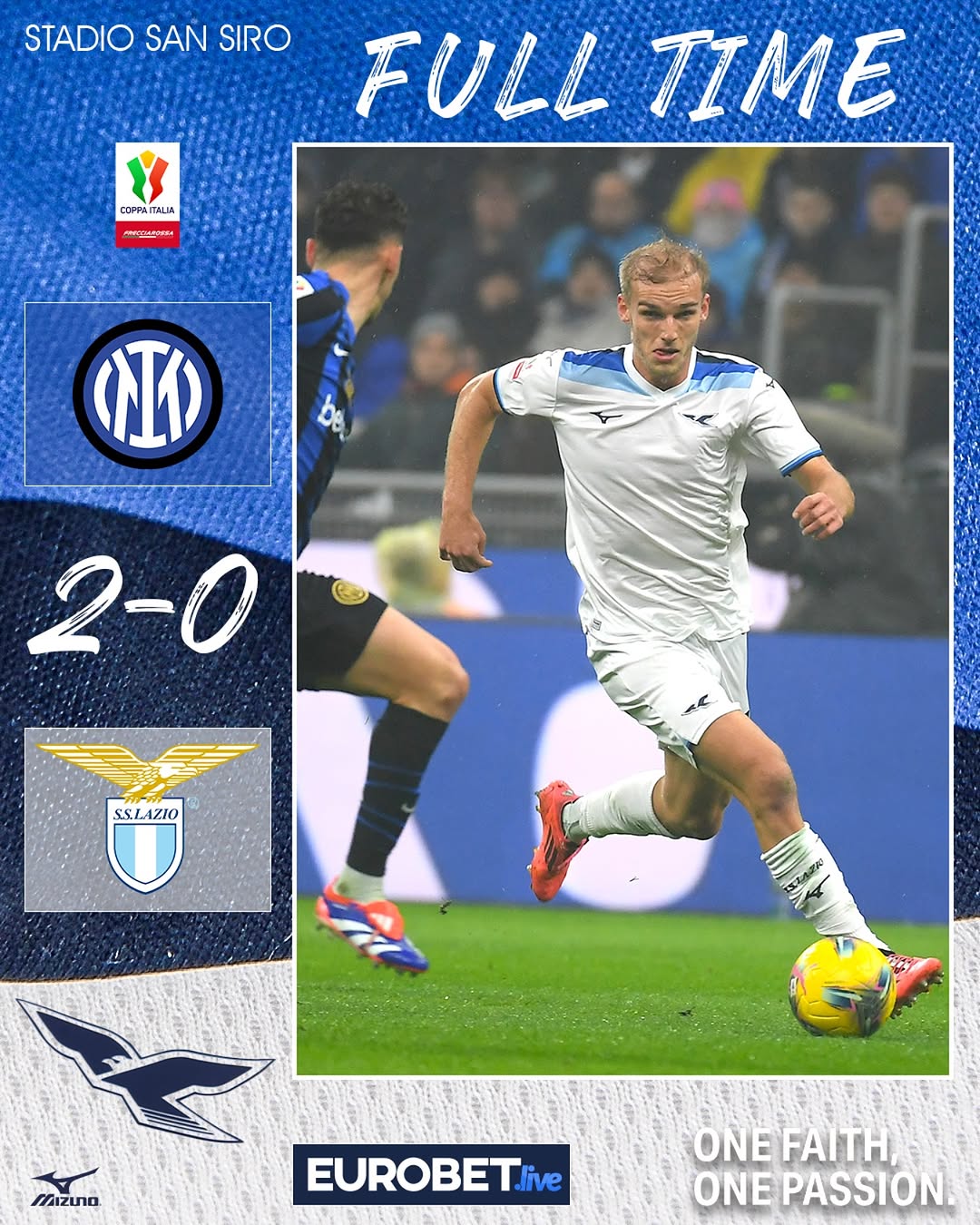 第81分钟,拉齐奥佩德罗禁区弧顶的远射经过折射后,击中了横梁外沿弹出。最终国米2-0取得了本场比赛的胜利,晋级四强,半决赛将战AC米兰。