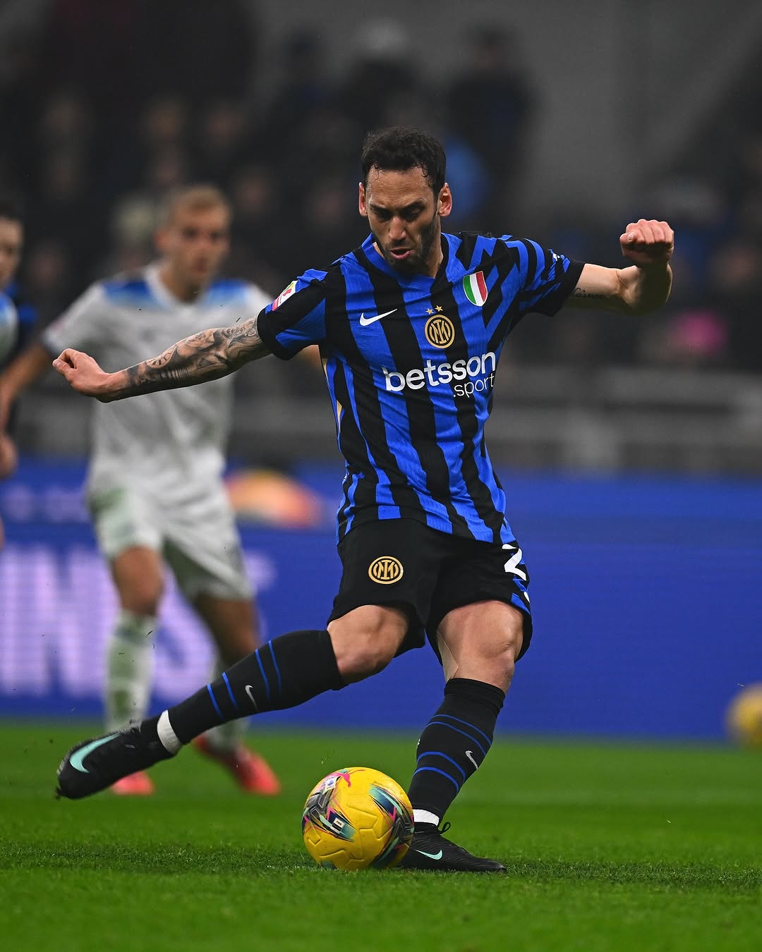 恰尔汗奥卢主罚低射破门,国米2-0拉齐奥。