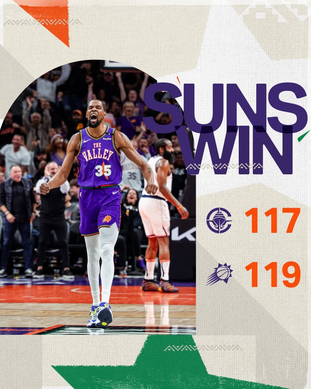 NBA常规赛 太阳119-117战胜快船 杜兰特末节19分34+7+4导演逆转