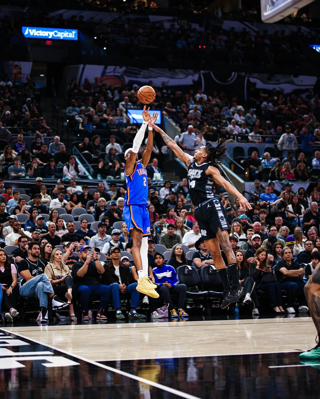 前两节比赛,马刺外线三分16-9净胜7记三分多达21分,马刺16记三分创队史半场纪录。雷霆2人得分上双,亚历山大与杰伦均22分,卡斯尔4记三分18分引领马刺3人。