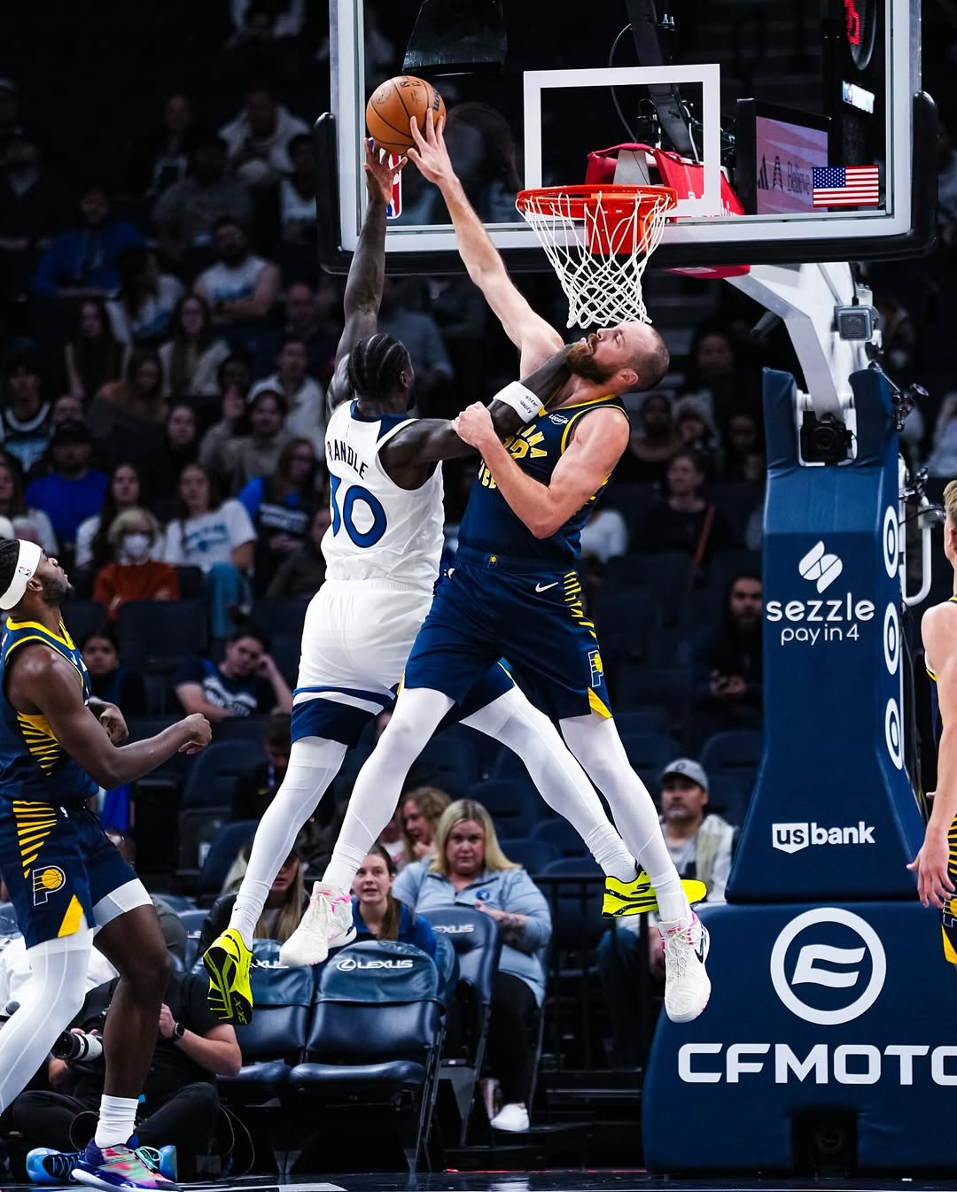 第二节比赛步行者攻势不减,分差一度拉大至16分,尽管麦康纳受伤离场让球队遭遇变数,森林狼在爱德华兹与兰德尔引领下追至个位数分差,但半场结束步行者仍以65:57领先。