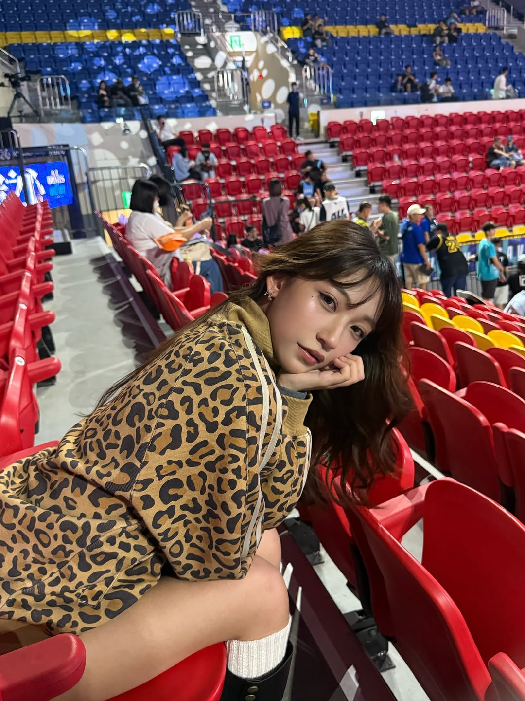 PLG富邦勇士主场近日迎来一位「意外主角」!11月9日的一场比赛中,当韩籍拉拉队女神「台妹小南」南珉贞在场中带动气氛时,镜头意外捕捉到观众席一位穿着豹纹外套、超辣牛仔热裤的正妹观众。