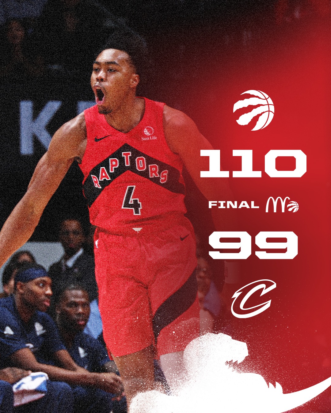 NBA常规赛中,多伦多猛龙队在主将布兰登·英格拉姆全场轰下37分(创赛季新高)并抓下7个篮板的出色引领下,以110-99力克克里夫兰骑士队,不仅完成本赛季对对手的「三杀」,更将自身的连胜纪录推向第八场。