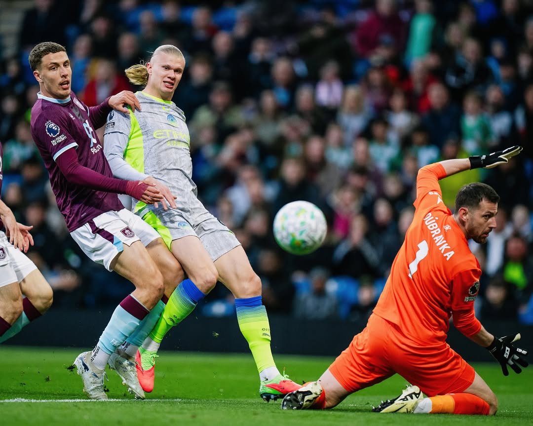 比赛开场仅仅5分钟,场上的平衡就被打破。多库在中场送出一记精准的直塞,哈兰德心领神会高速插上,面对出击的门将杜布拉夫卡,挪威人冷静地选择了一记轻巧的搓射。 皮球划出一道弧线,应声入网。曼城1-0领先,这个开局完美得如同赛前演练。
